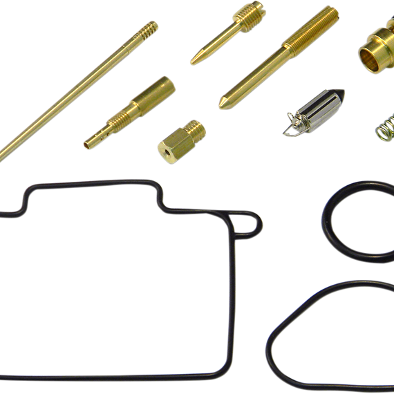 Caracteristicas: Includes main and pilot jets, jet needle sets, float valves, float chamber gaskets and O-rings (jets included in each kit are for common sizes; according to riding conditions and riding preference, different size jets may be used) Award-winning rubber-top float valves are made using highest quality rubber and a plated body for resistance to harsh gas, ethanol and methanol Each complete kit rebuilds OEM carburetors to achieve optimum performance Idle screw sets, pilot screw sets and air screw sets also included if applicable