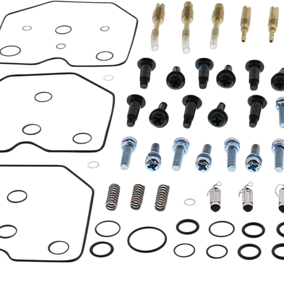 Caracteristicas: Kit includes all necessary O-rings, gaskets, jets, needle, mixture screw, float bowl screws, float valve needle and seat (needle jet and other pressed-in jets are not included in kit) NBR rubber material is used on all O-rings and rubber gaskets; NBR has excellent resistance to the ethanol used in today's fuels Applications that use paper float bowl gaskets are upgraded to High Performance Interference Gasket material Models with multiple carburetors include components to repair all carburetors OEM jet sizes and slide needles are included in the kit
