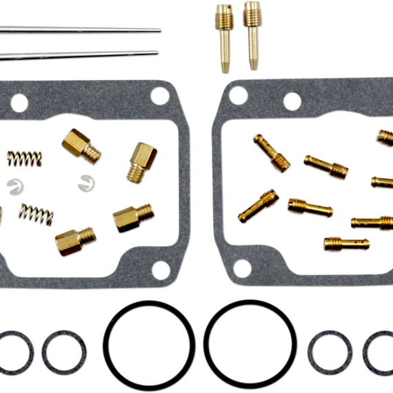 Caracteristicas: Kit includes all necessary O-rings, gaskets, jets, needle, mixture screw, float bowl screws, float valve needle and seat (needle jet and other pressed-in jets are not included in kit) NBR rubber material is used on all O-rings and rubber gaskets; NBR has excellent resistance to the ethanol used in today's fuels Applications that use paper float bowl gaskets are upgraded to High Performance Interference Gasket material Models with multiple carburetors include components to repair all carburetors OEM jet sizes and slide needles are included in the kit