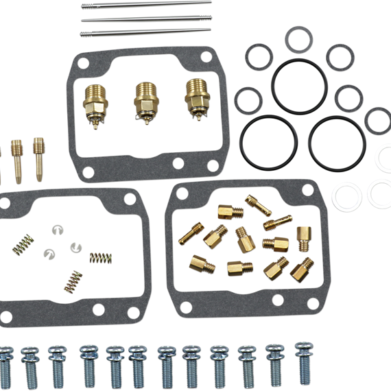 Caracteristicas: Kit includes all necessary O-rings, gaskets, jets, needle, mixture screw, float bowl screws, float valve needle and seat (needle jet and other pressed-in jets are not included in kit) NBR rubber material is used on all O-rings and rubber gaskets; NBR has excellent resistance to the ethanol used in today's fuels Applications that use paper float bowl gaskets are upgraded to High Performance Interference Gasket material Models with multiple carburetors include components to repair all carburetors OEM jet sizes and slide needles are included in the kit
