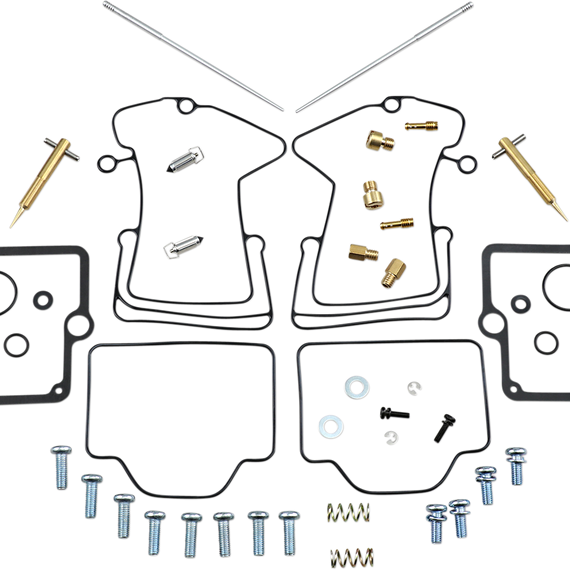 Caracteristicas: Kit includes all necessary O-rings, gaskets, jets, needle, mixture screw, float bowl screws, float valve needle and seat (needle jet and other pressed-in jets are not included in kit) NBR rubber material is used on all O-rings and rubber gaskets; NBR has excellent resistance to the ethanol used in today's fuels Applications that use paper float bowl gaskets are upgraded to High Performance Interference Gasket material Models with multiple carburetors include components to repair all carburetors OEM jet sizes and slide needles are included in the kit