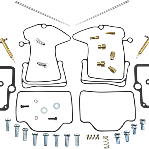 Caracteristicas: Kit includes all necessary O-rings, gaskets, jets, needle, mixture screw, float bowl screws, float valve needle and seat (needle jet and other pressed-in jets are not included in kit) NBR rubber material is used on all O-rings and rubber gaskets; NBR has excellent resistance to the ethanol used in today's fuels Applications that use paper float bowl gaskets are upgraded to High Performance Interference Gasket material Models with multiple carburetors include components to repair all carburetors OEM jet sizes and slide needles are included in the kit