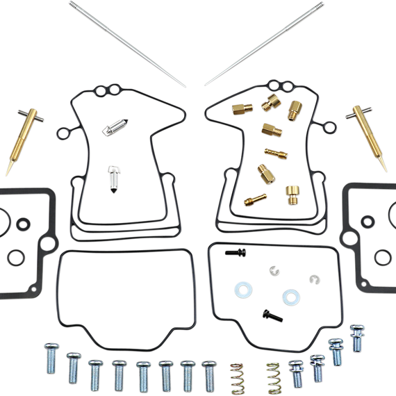 Caracteristicas: Kit includes all necessary O-rings, gaskets, jets, needle, mixture screw, float bowl screws, float valve needle and seat (needle jet and other pressed-in jets are not included in kit) NBR rubber material is used on all O-rings and rubber gaskets; NBR has excellent resistance to the ethanol used in today's fuels Applications that use paper float bowl gaskets are upgraded to High Performance Interference Gasket material Models with multiple carburetors include components to repair all carburetors OEM jet sizes and slide needles are included in the kit