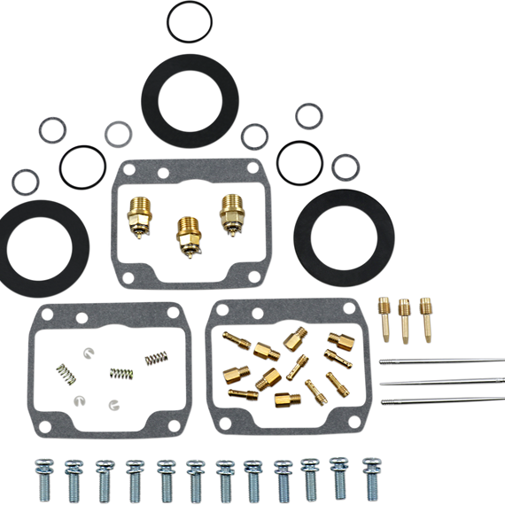 Caracteristicas: Kit includes all necessary O-rings, gaskets, jets, needle, mixture screw, float bowl screws, float valve needle and seat (needle jet and other pressed-in jets are not included in kit) NBR rubber material is used on all O-rings and rubber gaskets; NBR has excellent resistance to the ethanol used in today's fuels Applications that use paper float bowl gaskets are upgraded to High Performance Interference Gasket material Models with multiple carburetors include components to repair all carburetors OEM jet sizes and slide needles are included in the kit