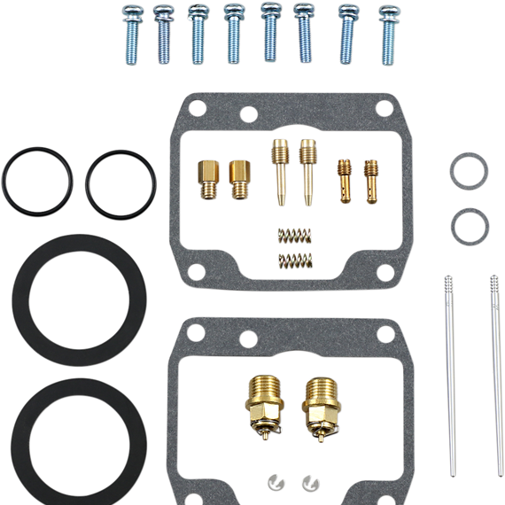 • Kit includes all necessary O-rings, gaskets, jets, needle, mixture screw, float bowl screws, float valve needle and seat (needle jet and other pressed-in jets are not included in kit)