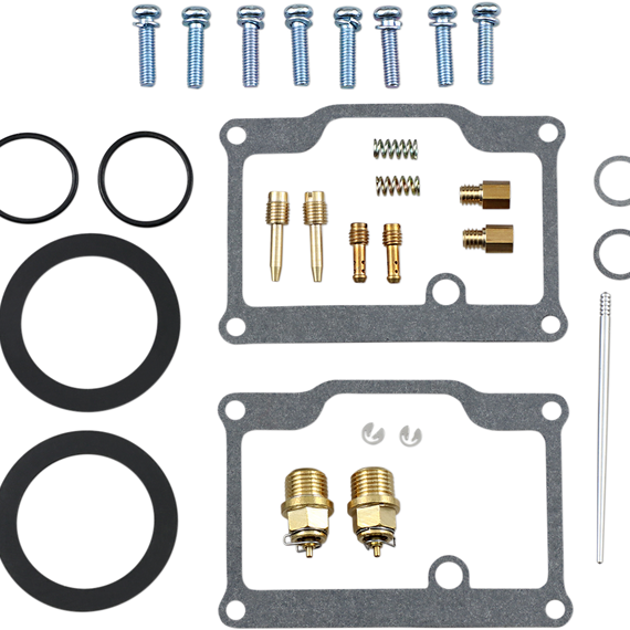 • Kit includes all necessary O-rings, gaskets, jets, needle, mixture screw, float bowl screws, float valve needle and seat (needle jet and other pressed-in jets are not included in kit)