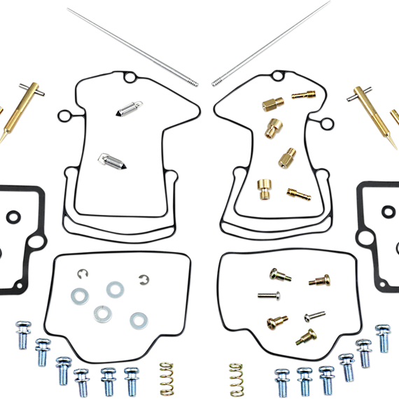 Caracteristicas: Kit includes all necessary O-rings, gaskets, jets, needle, mixture screw, float bowl screws, float valve needle and seat (needle jet and other pressed-in jets are not included in kit) NBR rubber material is used on all O-rings and rubber gaskets; NBR has excellent resistance to the ethanol used in today's fuels Applications that use paper float bowl gaskets are upgraded to High Performance Interference Gasket material Models with multiple carburetors include components to repair all carburetors OEM jet sizes and slide needles are included in the kit