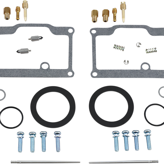 Caracteristicas: Kit includes all necessary O-rings, gaskets, jets, needle, mixture screw, float bowl screws, float valve needle and seat (needle jet and other pressed-in jets are not included in kit) NBR rubber material is used on all O-rings and rubber gaskets; NBR has excellent resistance to the ethanol used in today's fuels Applications that use paper float bowl gaskets are upgraded to High Performance Interference Gasket material Models with multiple carburetors include components to repair all carburetors OEM jet sizes and slide needles are included in the kit