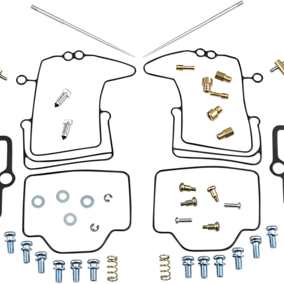 • Kit includes all necessary O-rings, gaskets, jets, needle, mixture screw, float bowl screws, float valve needle and seat (needle jet and other pressed-in jets are not included in kit)