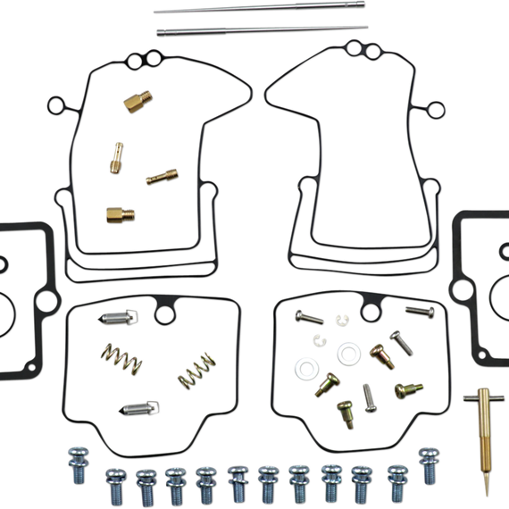 Caracteristicas: Kit includes all necessary O-rings, gaskets, jets, needle, mixture screw, float bowl screws, float valve needle and seat (needle jet and other pressed-in jets are not included in kit) NBR rubber material is used on all O-rings and rubber gaskets; NBR has excellent resistance to the ethanol used in today's fuels Applications that use paper float bowl gaskets are upgraded to High Performance Interference Gasket material Models with multiple carburetors include components to repair all carburetors OEM jet sizes and slide needles are included in the kit
