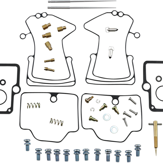 Caracteristicas: Kit includes all necessary O-rings, gaskets, jets, needle, mixture screw, float bowl screws, float valve needle and seat (needle jet and other pressed-in jets are not included in kit) NBR rubber material is used on all O-rings and rubber gaskets; NBR has excellent resistance to the ethanol used in today's fuels Applications that use paper float bowl gaskets are upgraded to High Performance Interference Gasket material Models with multiple carburetors include components to repair all carburetors OEM jet sizes and slide needles are included in the kit