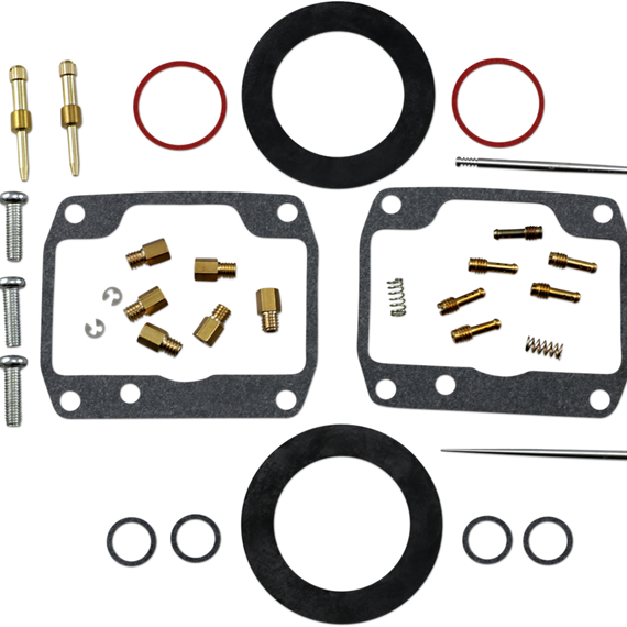 Caracteristicas: Kit includes all necessary O-rings, gaskets, jets, needle, mixture screw, float bowl screws, float valve needle and seat (needle jet and other pressed-in jets are not included in kit) NBR rubber material is used on all O-rings and rubber gaskets; NBR has excellent resistance to the ethanol used in today's fuels Applications that use paper float bowl gaskets are upgraded to High Performance Interference Gasket material Models with multiple carburetors include components to repair all carburetors OEM jet sizes and slide needles are included in the kit