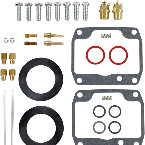 Caracteristicas: Kit includes all necessary O-rings, gaskets, jets, needle, mixture screw, float bowl screws, float valve needle and seat (needle jet and other pressed-in jets are not included in kit) NBR rubber material is used on all O-rings and rubber gaskets; NBR has excellent resistance to the ethanol used in today's fuels Applications that use paper float bowl gaskets are upgraded to High Performance Interference Gasket material Models with multiple carburetors include components to repair all carburetors OEM jet sizes and slide needles are included in the kit
