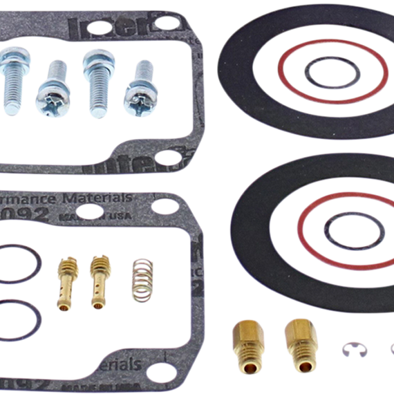 Caracteristicas: Kit includes all necessary O-rings, gaskets, jets, needle, mixture screw, float bowl screws, float valve needle and seat (needle jet and other pressed-in jets are not included in kit) NBR rubber material is used on all O-rings and rubber gaskets; NBR has excellent resistance to the ethanol used in today's fuels Applications that use paper float bowl gaskets are upgraded to High Performance Interference Gasket material Models with multiple carburetors include components to repair all carburetors OEM jet sizes and slide needles are included in the kit