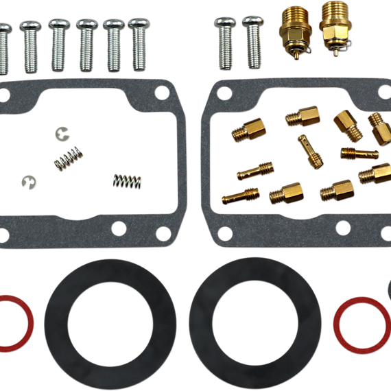 Caracteristicas: Kit includes all necessary O-rings, gaskets, jets, needle, mixture screw, float bowl screws, float valve needle and seat (needle jet and other pressed-in jets are not included in kit) NBR rubber material is used on all O-rings and rubber gaskets; NBR has excellent resistance to the ethanol used in today's fuels Applications that use paper float bowl gaskets are upgraded to High Performance Interference Gasket material Models with multiple carburetors include components to repair all carburetors OEM jet sizes and slide needles are included in the kit