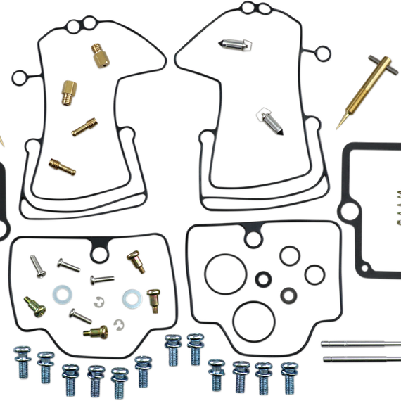 Caracteristicas: Kit includes all necessary O-rings, gaskets, jets, needle, mixture screw, float bowl screws, float valve needle and seat (needle jet and other pressed-in jets are not included in kit) NBR rubber material is used on all O-rings and rubber gaskets; NBR has excellent resistance to the ethanol used in today's fuels Applications that use paper float bowl gaskets are upgraded to High Performance Interference Gasket material Models with multiple carburetors include components to repair all carburetors OEM jet sizes and slide needles are included in the kit