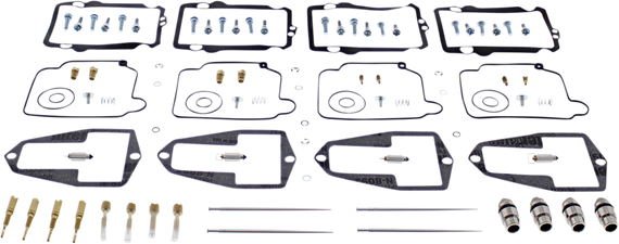 Caracteristicas: Kit includes all necessary O-rings, gaskets, jets, needle, mixture screw, float bowl screws, float valve needle and seat (needle jet and other pressed-in jets are not included in kit) NBR rubber material is used on all O-rings and rubber gaskets; NBR has excellent resistance to the ethanol used in today's fuels Applications that use paper float bowl gaskets are upgraded to High Performance Interference Gasket material Models with multiple carburetors include components to repair all carburetors OEM jet sizes and slide needles are included in the kit
