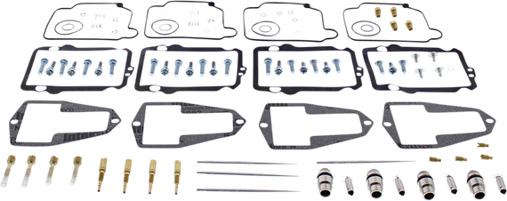 Caracteristicas: Kit includes all necessary O-rings, gaskets, jets, needle, mixture screw, float bowl screws, float valve needle and seat (needle jet and other pressed-in jets are not included in kit) NBR rubber material is used on all O-rings and rubber gaskets; NBR has excellent resistance to the ethanol used in today's fuels Applications that use paper float bowl gaskets are upgraded to High Performance Interference Gasket material Models with multiple carburetors include components to repair all carburetors OEM jet sizes and slide needles are included in the kit