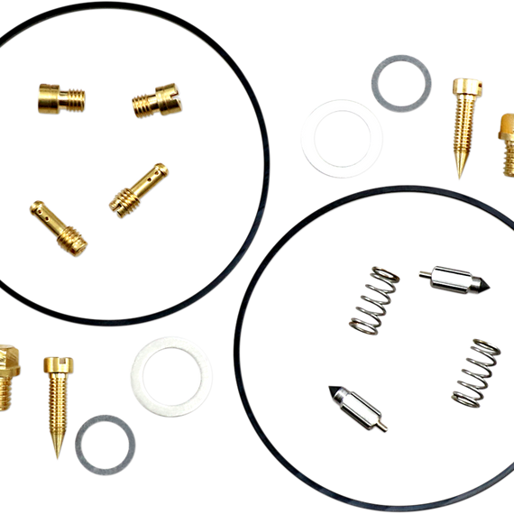 • Kit includes all necessary O-rings, gaskets, jets, needle, mixture screw, float bowl screws, float valve needle and seat (needle jet and other pressed-in jets are not included in kit)