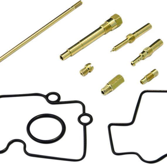 Caracteristicas: Includes main and pilot jets, jet needle sets, float valves, float chamber gaskets and O-rings (jets included in each kit are for common sizes; according to riding conditions and riding preference, different size jets may be used) Award-winning rubber-top float valves are made using highest quality rubber and a plated body for resistance to harsh gas, ethanol and methanol Each complete kit rebuilds OEM carburetors to achieve optimum performance Idle screw sets, pilot screw sets and air screw sets also included if applicable