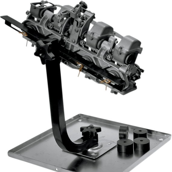 Caracteristicas: Conveniently positions carburetor at ideal height and allows 360° rotations for easy access Includes expansion plugs to hold carbs with openings from 22 mm-41 mm for unobstructed use Can be bench mounted