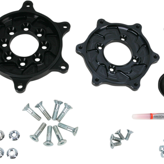 Caracteristicas: Carrier Ring Sets are the key components of the Pro Series System Modular carriers allow riders to quickly and easily alternate their wheel/tire race sets for different track surface Fronts include carrier ring adapter and all necessary spacers and hardware to mount OE-type brake rotor; rears include carrier ring adapters (2) and all spacers and hardware to mount OE-type brake rotor and drive sprocket