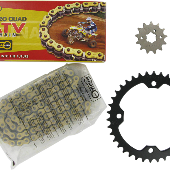 • Chain is Regina’s high-performance 520 Quad Z-ring series (8,000 ft./lb. strength) with gold outer plates and Z sealing rings, which dramatically improve performance and wear life; includes clip-type masterlink