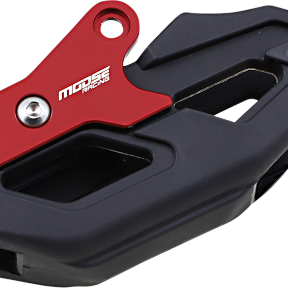 Caracteristicas: Main chain guide body is made from 6061 T6 Aluminum for added strength and durability Chain block is made from high density TPU materials for guaranteed high wear abrasion and impact resistance High quality anodization to prevent fade when exposed in high UV climates 3D Design helps prevent mud and debris from building up and causing chain derailment Mounting hardware is included