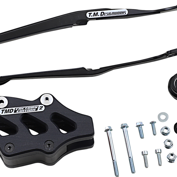Caracteristicas: The kit includes front slider, lower frame pad & FE #2 rear guide with replaceable wear pad. Noise dampening pad system lowers chain slap noise. A special chain guidance backing plate keeps the chain constantly centered to improve suspension. The lower Powerlip frame pad last longer but more importantly lowers surface drag.