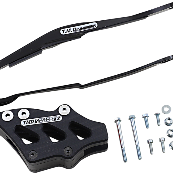 Caracteristicas: The kit includes front slider, lower frame pad & FE #2 rear guide with replaceable wear pad. Noise dampening pad system lowers chain slap noise. A special chain guidance backing plate keeps the chain constantly centered to improve suspension. The lower Powerlip frame pad last longer but more importantly lowers surface drag.