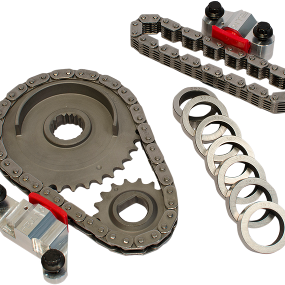 • Kits include: Cam and crank sprockets, sprocket alignment spacers, inner and outer cam chains, inner and outer hydraulic tensioner assemblies