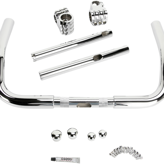 Caracteristicas: Innovative bars present the ultimate in rider personal adjustment and fit Unique "Klamps" allow control/grip portions of the handlebar to be adjusted in several directions; rider can tailor to his/her exact liking Bar sections are manufactured from DOM tubing, 'Klamps' are machined from 6061 billet aluminum, all hardware is stainless steel All feature a fully knurled riser clamp area for standard 5-1/4" width 1†risers All are drilled/slotted for wiring and bar end is notched for Throttle-By-Wire applications All include chromed, billet aluminum, domed bar end plugs for a finished look Works with HD OEM Heated Grips Made in the U.S.A.