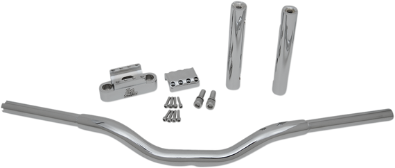 Caracteristicas: Accepts stock controls 8 bolt billet aluminum clamp 3-inch on-center risers High-strength steel tubing construction Designed for internal wiring Made in the U.S.A.