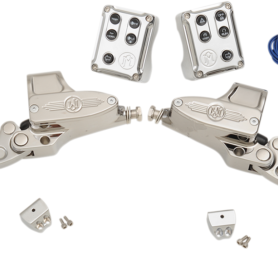 Caracteristicas: CNC machined from billet aluminum Kits include brake master cylinder, brake light switch, starter interrupt switch, left and right side switch housings, dual cable snap in or electronic throttle by wire throttle housing, clutch side spacer and cable clutch perch or hydraulic clutch master cylinder 11/16†clutch master cylinder has hard anodized bore to eliminate wear CAN-bus switch housings utilize stock circuit board for compatibility Mounting hardware included Made in the U.S.A.
