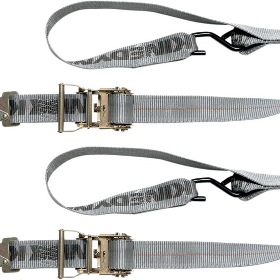 Caracteristicas: Positive-lock military snap hook to prevent release over rough terrain Easy-to-use quick-tightening ratchet buckle and one-hand release bar Built-in soft loop to protect your paint and chrome Shock-absorbing sling-type material E-coated scratch-resistant S-hook 1,670-lb. working load limit