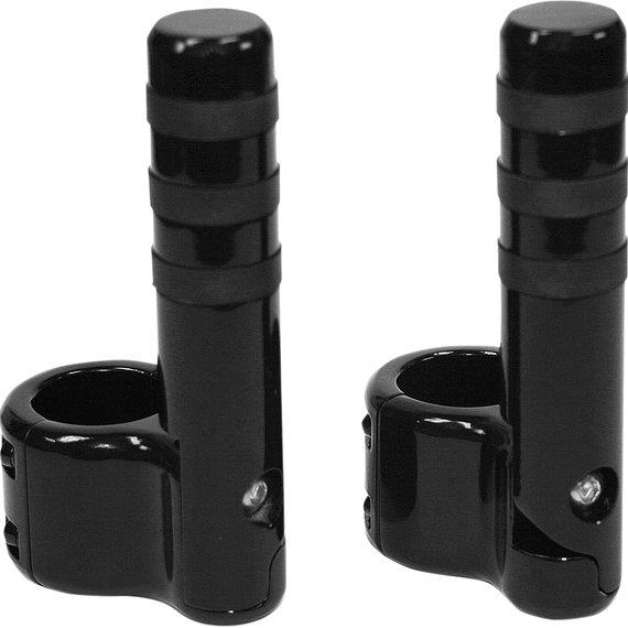 Caracteristicas: High-quality billet aluminum clamp-on footpegs will fit any highway bar or frame with 1-1/4" or 1-1/2" o.d. tubing including Pegs flip up out of the way when not in use