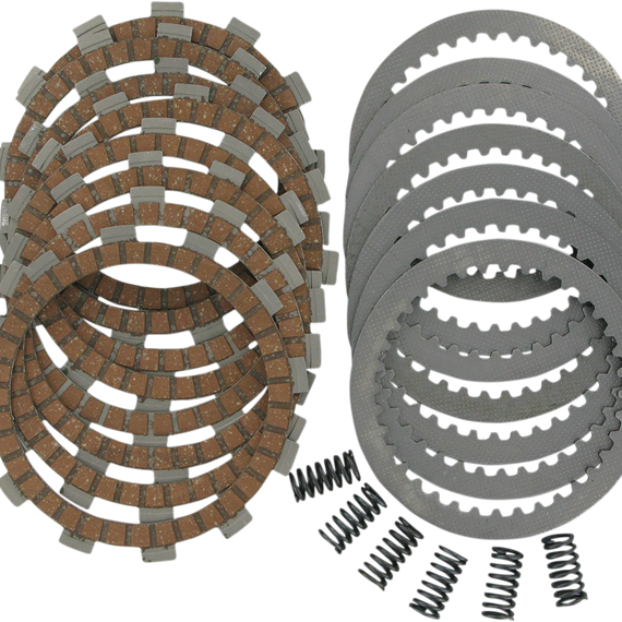 Caracteristicas: Designed to outperform any OEM or aftermarket clutch DPK kits include friction plates, steel drive plates and clutch springs, except when OEM clutch includes reusable diaphragm spring DPK clutch kits come in a foam-lined hard plastic case that protects clutch components from being damaged prior to installation Case can be used to store and transport parts, tools or other items after clutch is installed Come ready to race - no need to presoak plates in oil Designed to ensure ultrasmooth power delivery Exclusive high-heat friction materials for fade-free performance Friction compounds designed to suit off-road and dual-sport bikes More durable than OEM plates Steel drive plates Steel plates won't expand, do not fade or promote clutch swell like stock aluminum plates Long lasting - up to 300% more life than stock plates Increased weight over stock plates adds flywheel effect for aiding starting and traction Will not muddy or contaminate oil Clutch springs Precision-wound using the finest chrome silicone wire Heat-treated and shot-peened for maximum life Individually designed to ensure no slippage with super-strong spring rates Improve feel and ease of clutch operation