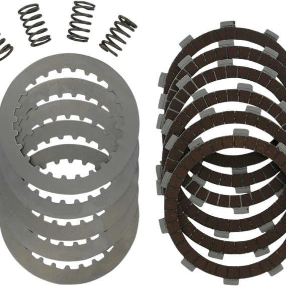 Caracteristicas: Designed to outperform any OEM or aftermarket clutch DPK kits include friction plates, steel drive plates and clutch springs, except when OEM clutch includes reusable diaphragm spring DPK clutch kits come in a foam-lined hard plastic case that protects clutch components from being damaged prior to installation Case can be used to store and transport parts, tools or other items after clutch is installed Come ready to race - no need to presoak plates in oil Designed to ensure ultrasmooth power delivery Exclusive high-heat friction materials for fade-free performance Friction compounds designed to suit off-road and dual-sport bikes More durable than OEM plates Steel drive plates Steel plates won't expand, do not fade or promote clutch swell like stock aluminum plates Long lasting - up to 300% more life than stock plates Increased weight over stock plates adds flywheel effect for aiding starting and traction Will not muddy or contaminate oil Clutch springs Precision-wound using the finest chrome silicone wire Heat-treated and shot-peened for maximum life Individually designed to ensure no slippage with super-strong spring rates Improve feel and ease of clutch operation