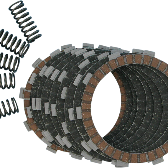 Caracteristicas: Get all the performance without all the fade or slip Friction plates are ready to fit - no need to pre-soak in oil Designed to ensure ultra-smooth power delivery More durable than OEM clutch plates High-heat friction material for fade-free performance Clutch springs are shot-peened for maximum life, heat-treated and precision-wound using only the finest chrome silicon Springs are individually designed for each application to ensure easy operation and great feel at the lever Steel friction plates are precision-made using exacting tolerances Plates are heat-treated for maximum life Will not muddy or contaminate oil