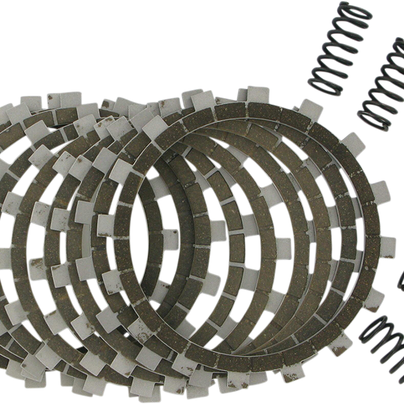 Caracteristicas: Get all the performance without all the fade or slip Friction plates are ready to fit - no need to pre-soak in oil Designed to ensure ultra-smooth power delivery More durable than OEM clutch plates High-heat friction material for fade-free performance Clutch springs are shot-peened for maximum life, heat-treated and precision-wound using only the finest chrome silicon Springs are individually designed for each application to ensure easy operation and great feel at the lever Steel friction plates are precision-made using exacting tolerances Plates are heat-treated for maximum life Will not muddy or contaminate oil