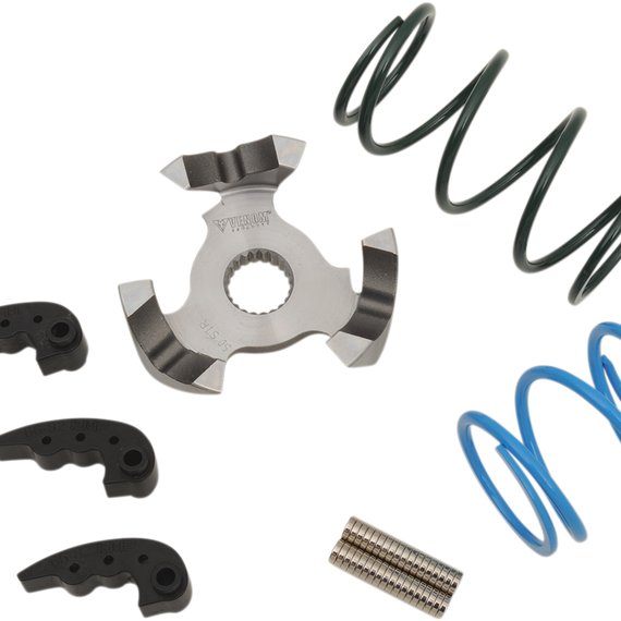 Caracteristicas: Achieves peak rpm faster and more aggressively Amazing all-around performance gains Holds peak rpm better Back shifts much quicker Superior weight profile offers better acceleration Works well with stock or modified motors Easily adjustable for tire size or other modifications Custom angle cut helix Much better power transfer than the stock weights Comes with two washers to prevent spring bind and free up clutch movement for faster shifts Spring holds much better tension on the belt than factory Includes primary and secondary springs Stage 1 or Stage 2 kits available Includes Goldstar weights