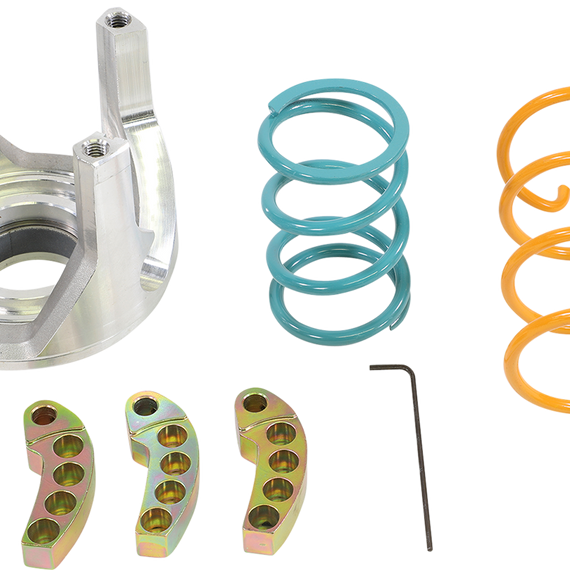 Caracteristicas: Huge acceleration and track speed gains Much better all-around clutching performance and “feel” Quicker back-shifting (down shift) More consistent clutching that holds RPM Lower clutch temps and longer belt life Easily adjustable for fine tuning Includes Goldstar magnetic adjustable clutch weights, primary spring, adjustable torsion conversion helix, and a torsion secondary spring Includes setup guidelines for model and modifications 2-stroke models with engine reverse may have an issue when engaging reverse drive. Must slowly and easily engage the clutch when in reverse. Only try to use reverse under light load situations like off the trailer, or on flat ground. Harsh engagement or high load situations can cause the clutch to miss the reverse notch and drop the belt to the bottom of the sheaves.