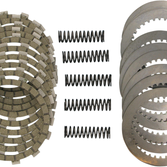 Caracteristicas: Get all the performance without all the fade or slip Get all the performance without all the fade or slip Friction plates are ready to fit - no need to pre-soak in oil Friction plates are ready to fit - no need to pre-soak in oil Designed to ensure ultra-smooth power delivery Designed to ensure ultra-smooth power delivery More durable than OEM clutch plates More durable than OEM clutch plates High-heat friction material for fade-free performance High-heat friction material for fade-free performance Clutch springs are shot-peened for maximum life, heat-treated and precision-wound using only the finest chrome silicon Clutch springs are shot-peened for maximum life, heat-treated and precision-wound using only the finest chrome silicon Springs are individually designed for each application to ensure easy operation and great feel at the lever Springs are individually designed for each application to ensure easy operation and great feel at the lever Kits available with or without steel friction plates Steel friction plates are precision-made using exacting tolerances Steel friction plates are precision-made using exacting tolerances Plates are heat-treated for maximum life Plates are heat-treated for maximum life Will not muddy or contaminate oil Will not muddy or contaminate oil Both styles of clutch kit include friction plates and springs (unless noted in part specific text)