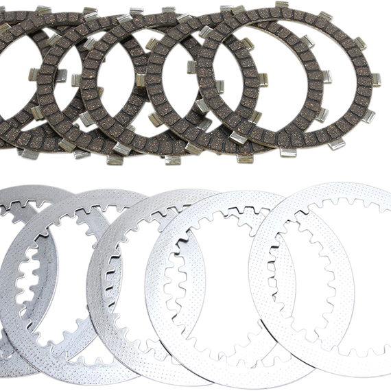 Caracteristicas: Anti-swell, alloy-impregnated heavy-duty cork-based facings for smooth clutch take-up Allow modulation, unlike paper clutches that tend to snatch Complete engine set of friction plates, HD springs and steel separator plates prevent premature driven plate wear, oil muddying and loss of stack height Built with swagged aluminum carriers that spread the load on the clutch basket and prevent clutch basket "dogging" 10-15% uprated heavy duty clutch springs Not for use with 100% synthetic oil