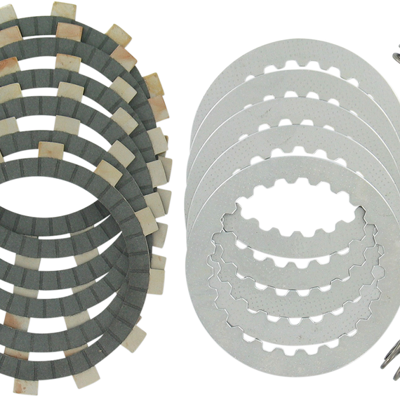 Caracteristicas: Heavy-duty clutch kit designed for hard use and race applications Features carbon-fiber lined clutch friction plates, a full set of steel plates and heavy-duty clutch springs Ideal for use in 4-stroke, high-torque engine applications; great upgrade for 2-stroke performance applications