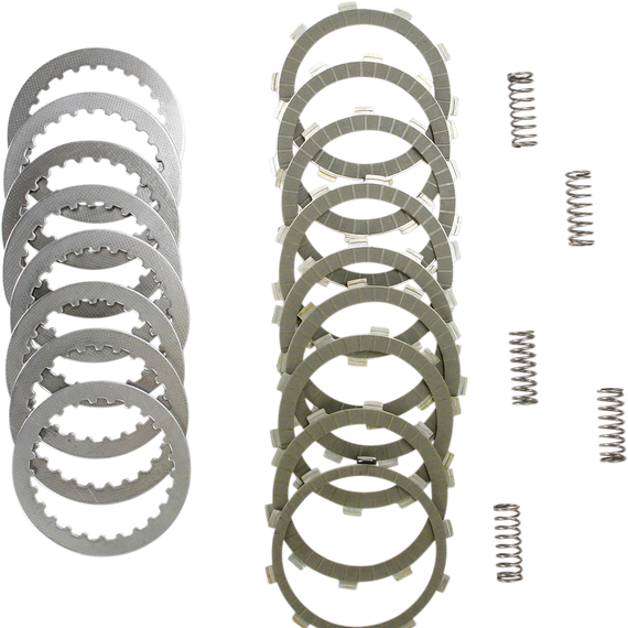 Caracteristicas: Include aramid fiber-lined friction plates, steel separator plates and springs Designed to withstand the rigors of hard street and racetrack use