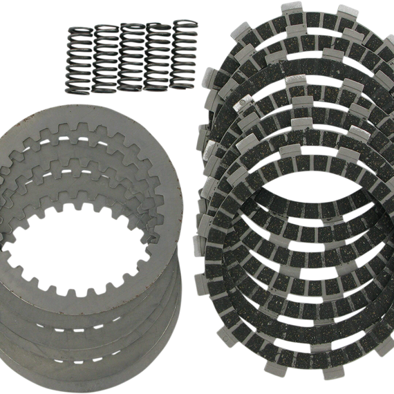Caracteristicas: Designed to outperform any OEM or aftermarket clutch DPK kits include friction plates, steel drive plates and clutch springs, except when OEM clutch includes reusable diaphragm spring DPK clutch kits come in a foam-lined hard plastic case that protects clutch components from being damaged prior to installation Case can be used to store and transport parts, tools or other items after clutch is installed Come ready to race - no need to presoak plates in oil Designed to ensure ultrasmooth power delivery Exclusive high-heat friction materials for fade-free performance Friction compounds designed to suit off-road and dual-sport bikes More durable than OEM plates Steel drive plates Steel plates won't expand, do not fade or promote clutch swell like stock aluminum plates Long lasting - up to 300% more life than stock plates Increased weight over stock plates adds flywheel effect for aiding starting and traction Will not muddy or contaminate oil Clutch springs Precision-wound using the finest chrome silicone wire Heat-treated and shot-peened for maximum life Individually designed to ensure no slippage with super-strong spring rates Improve feel and ease of clutch operation
