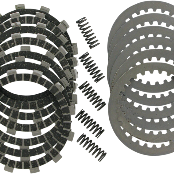 Caracteristicas: Designed to outperform any OEM or aftermarket clutch DPK kits include friction plates, steel drive plates and clutch springs, except when OEM clutch includes reusable diaphragm spring DPK clutch kits come in a foam-lined hard plastic case that protects clutch components from being damaged prior to installation Case can be used to store and transport parts, tools or other items after clutch is installed Come ready to race - no need to presoak plates in oil Designed to ensure ultrasmooth power delivery Exclusive high-heat friction materials for fade-free performance Friction compounds designed to suit off-road and dual-sport bikes More durable than OEM plates Steel drive plates Steel plates won't expand, do not fade or promote clutch swell like stock aluminum plates Long lasting - up to 300% more life than stock plates Increased weight over stock plates adds flywheel effect for aiding starting and traction Will not muddy or contaminate oil Clutch springs Precision-wound using the finest chrome silicone wire Heat-treated and shot-peened for maximum life Individually designed to ensure no slippage with super-strong spring rates Improve feel and ease of clutch operation