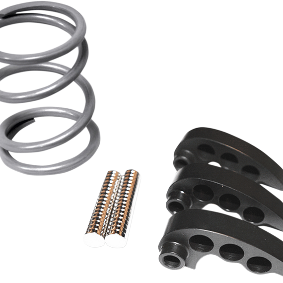 Caracteristicas: Achieves peak RPM faster and more aggressively Holds peak RPM better Back shifts much quicker Easily adjustable for tire size or other modifications Works well with stock or modified motors Much better power transfer than the stock weights Spring holds much better tension on the belt than factory