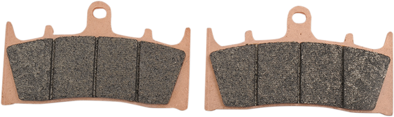 Caracteristicas: Asbestos and nickel-free Uses an organic base material for outstanding friction along with a soft, non-aggressive metal that allows the pad to glide on the disc, providing better control Universal, sintered metal compound that is a great OEM upgrade Offers a powerful initial bite and also a longer pad life Good pad choice for all types of street sport riding conditions Compatible with cast iron, stainless steel, and Carbiron materials and, when used with Braking rotors, provide the greatest control and braking power available